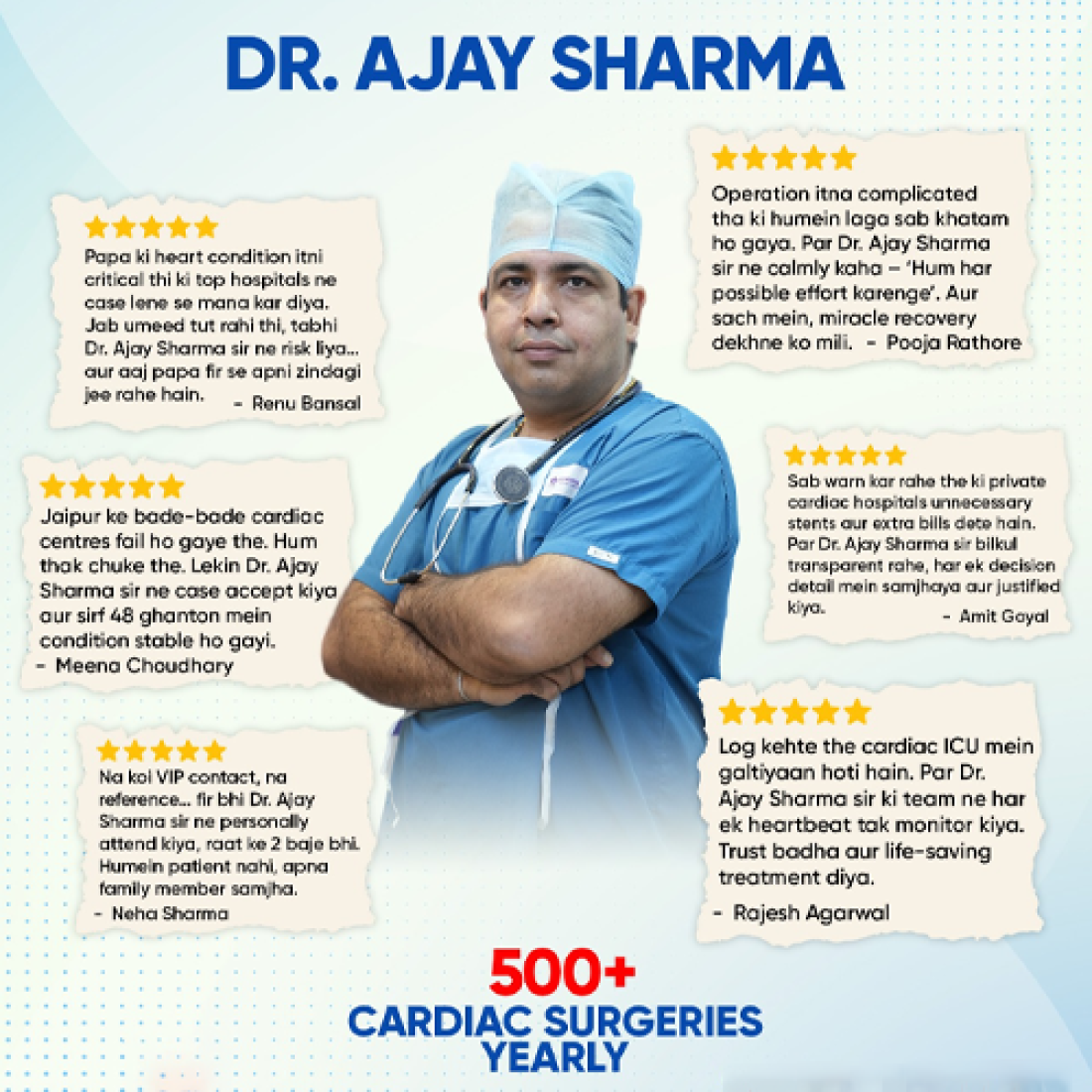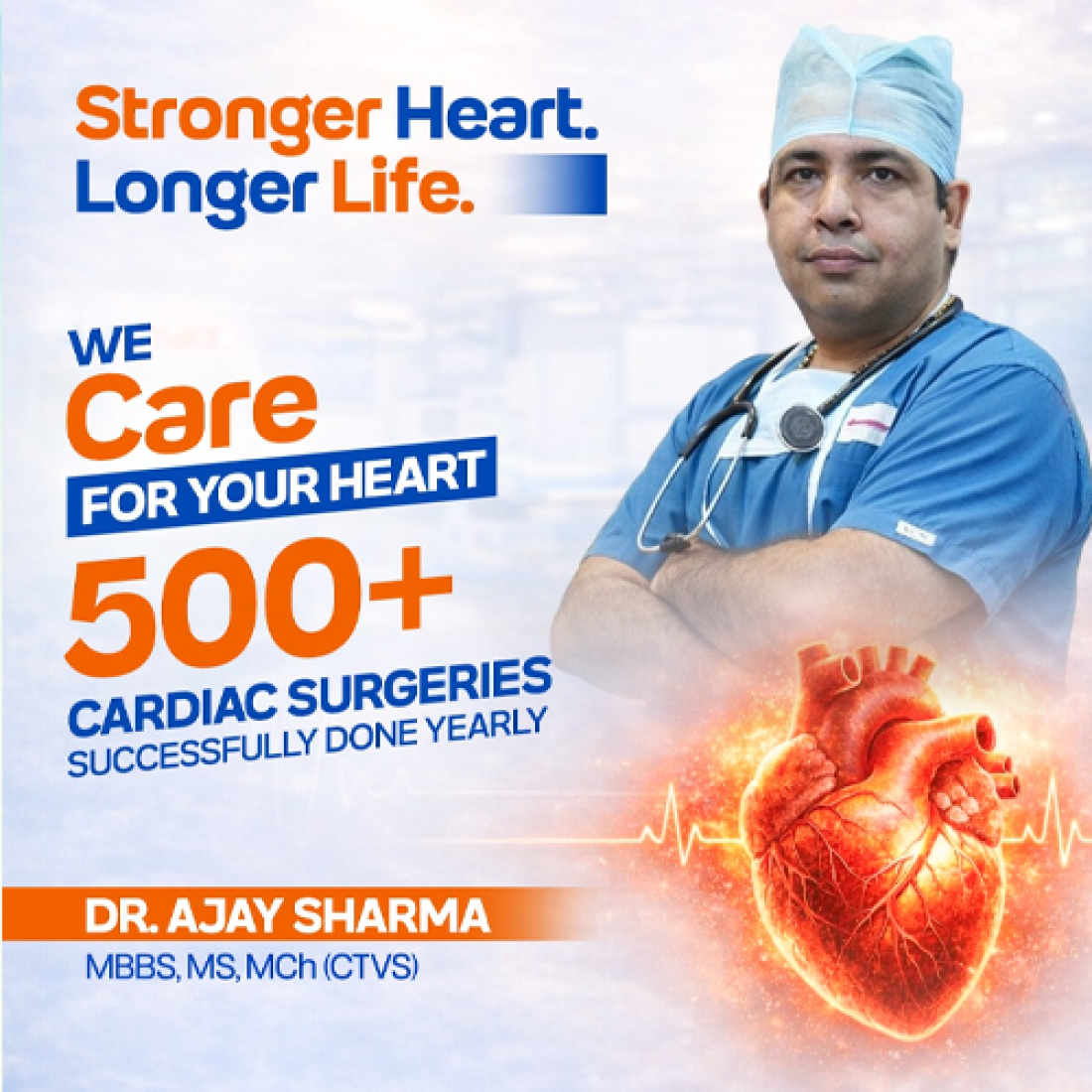 Dr.Ajay Sharma is a distinguished Cardio-thoracic & Vascular Surgeon, having super specialization in M.ch (CTVS), specialization in M.S (General Surgery) post his graduation in M.B.B.S.
